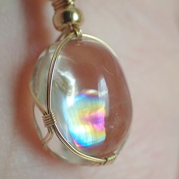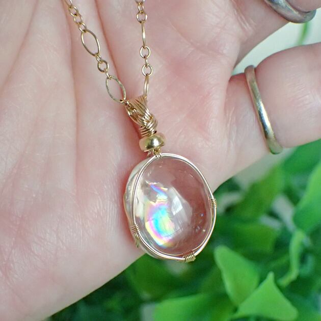 ご覧になってくださり、ありがとうございます。小ぶりながらも虹の美しいアイリスクォーツを〈女神巻き®〉デザインでペンダントトップにお創りしました。
