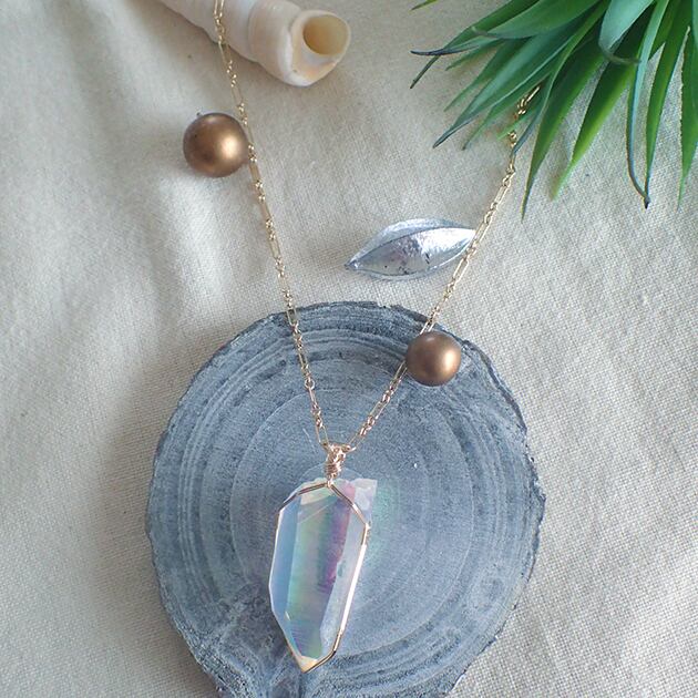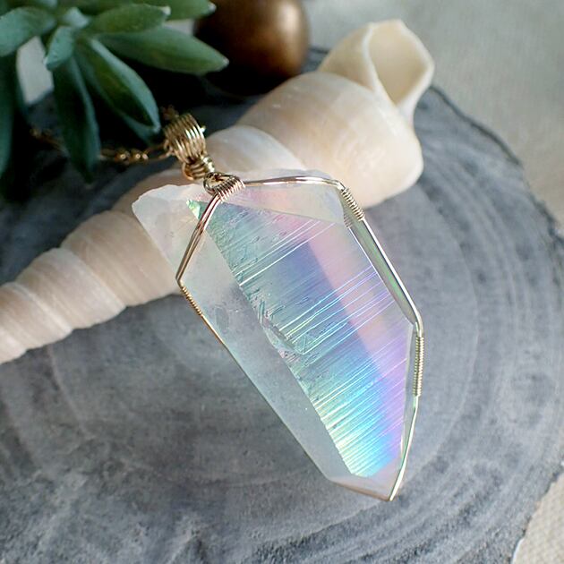・エンジェルオーラ・クォーツは水晶に貴金属の蒸着処理を施すことで生まれる石です。