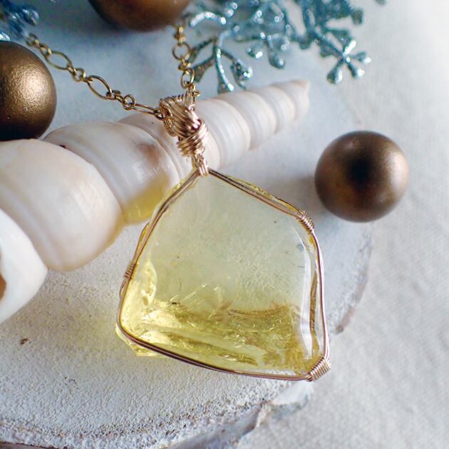 ご覧になってくださり、ありがとうございます。軽やかに輝く陽の光のようなアンダラクリスタルを〈女神巻き®〉デザインでペンダントトップにお創りしました。