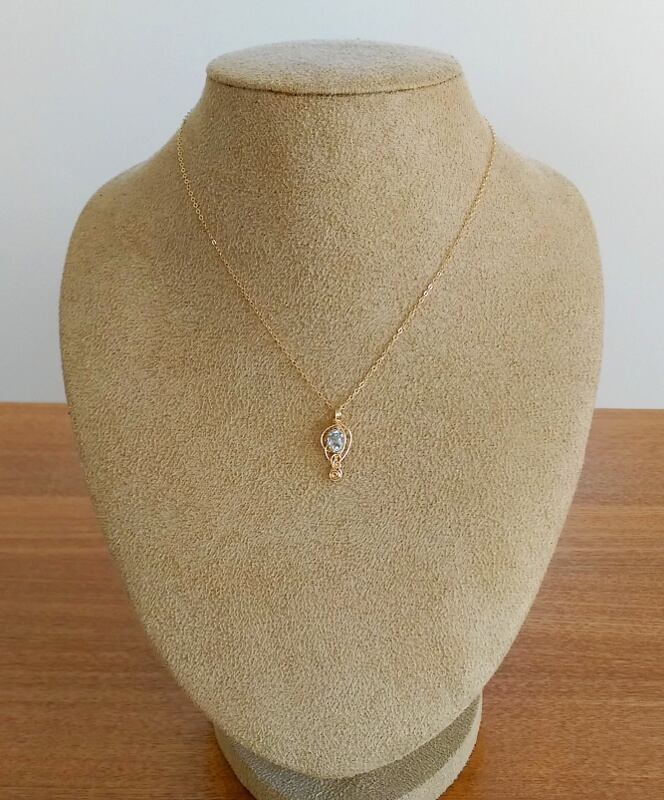 ご覧になってくださり、ありがとうございます。明るい色味のブルートパーズのルースを、14金ゴールドフィルドワイヤーでネックレスにしました。