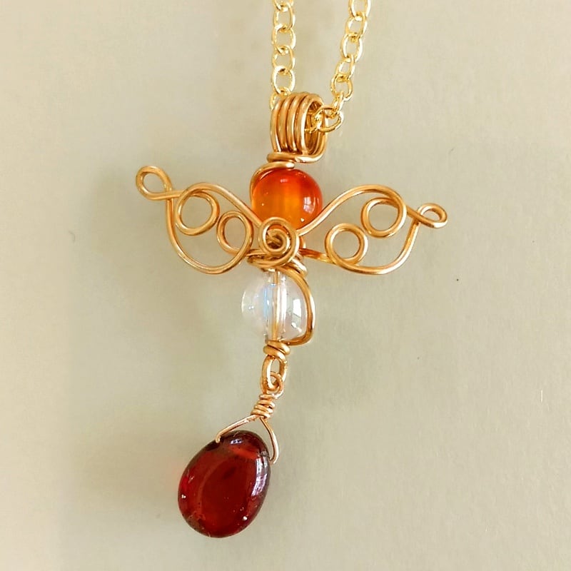 ご覧になってくださり、ありがとうございます。小粒の天然石ビーズとワイヤーで、愛らしい天使のネックレスを作りました。いつもあなたの傍に小さな天使が寄り添います。
