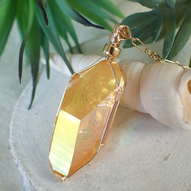 【星とあなたを繋ぐ石】〈女神巻き®〉サンセットオーラ・クォーツのペンダントトップ