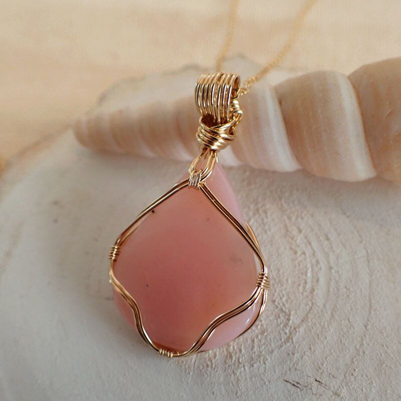 ご覧になってくださり、ありがとうございます。ミルキーな色味のピンクオパールを、繊細な〈女神巻き〉デザインでペンダントトップにしました。14金ゴールドフィルドワイヤーを使用しています。(※ネックレスチェーンは別売りです)