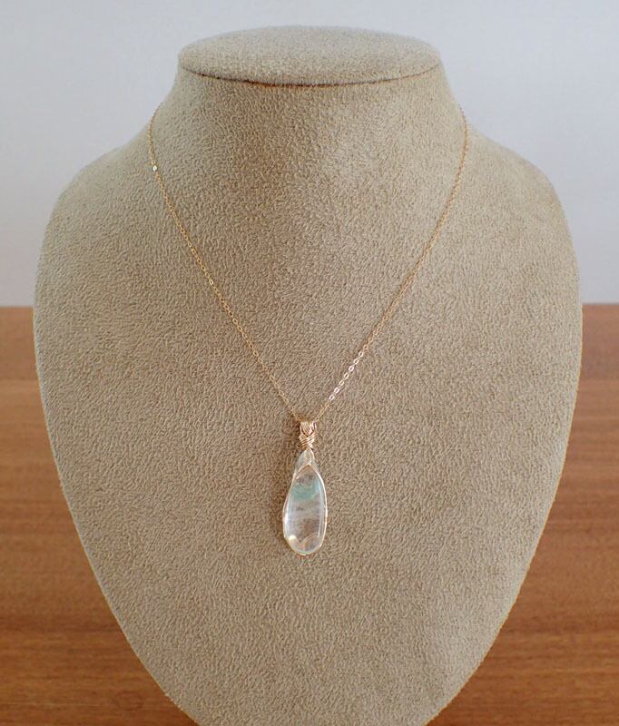 ご覧になってくださり、ありがとうございます。幻想的なグリーンファントムのタンブルを、繊細な〈女神巻き〉デザインでペンダントトップにしました。14金ゴールドフィルドワイヤーを使用しています。(※ネックレスチェーンは別売りです)