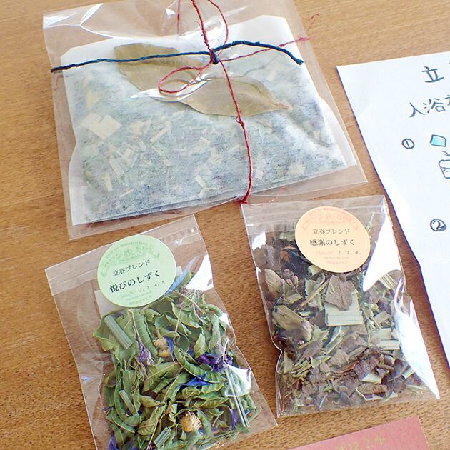 ・内容は、立春ブレンド『悦びのしずく』×1、立春ブレンド『感謝のしずく』×1、立春の入浴剤×1の計3点セットです。