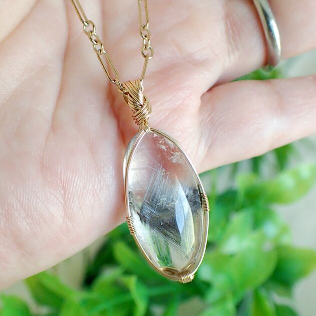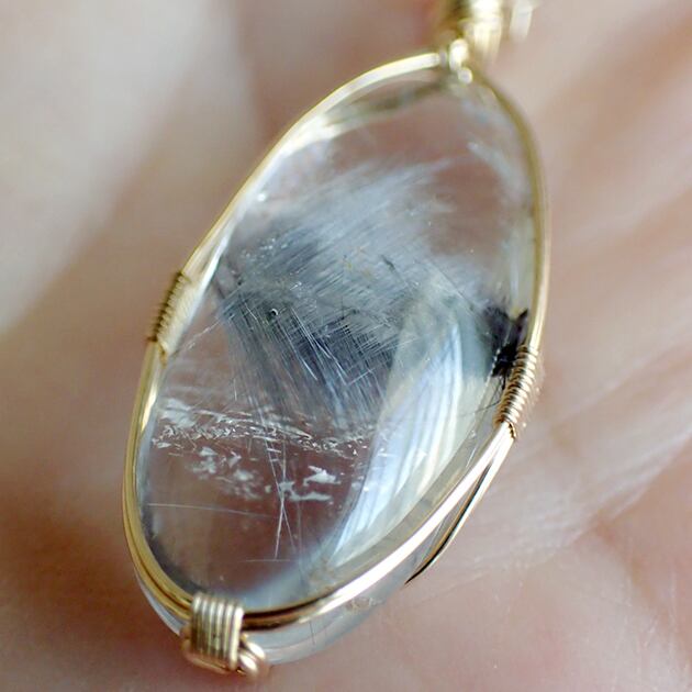 プラチナルチルクォーツ(ブルッカイト・インクォーツ)を〈女神巻き®〉デザインでペンダントトップにお創りしました。