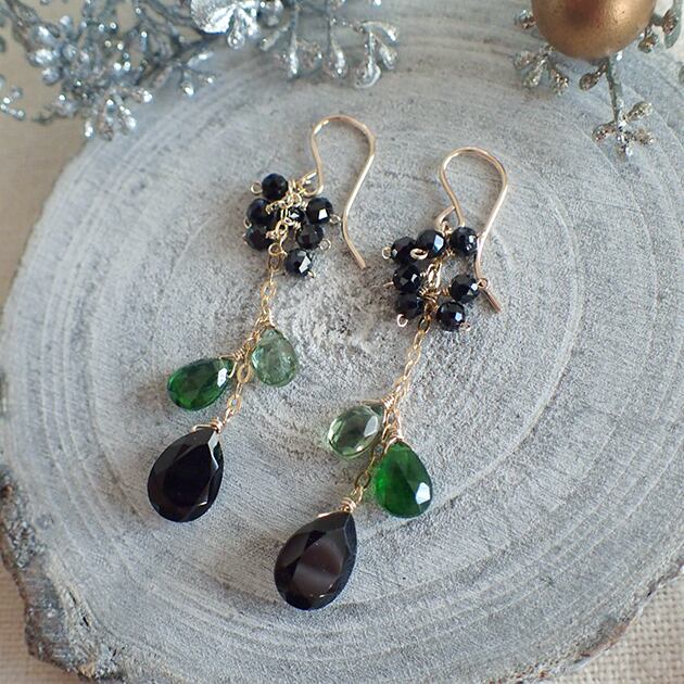 〈14kgf〉ブラックスピネルとグリーンカイヤナイト、クロムダイオプサイトのピアス