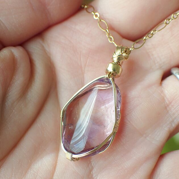 ボリビア産アメトリンのタンブルを女神巻き®ペンダントトップにお創りしました。