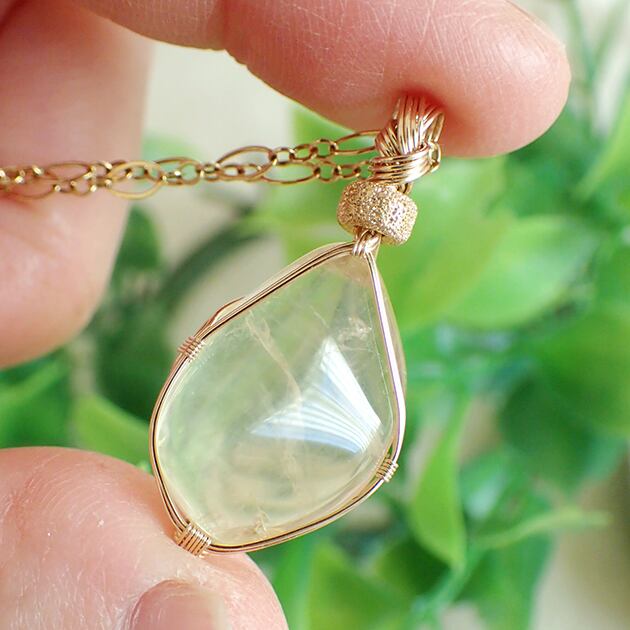 スキャポライトのタンブルを女神巻き®ペンダントトップにお創りしました。