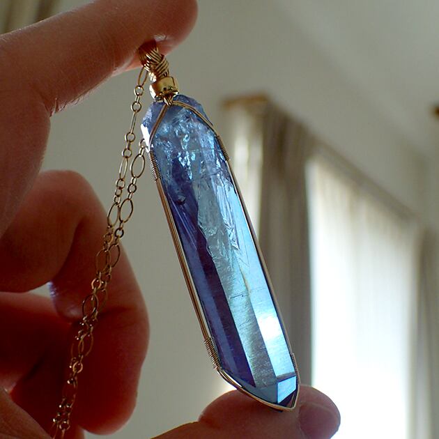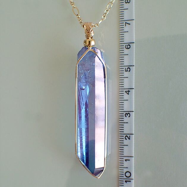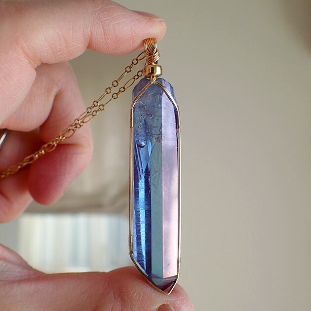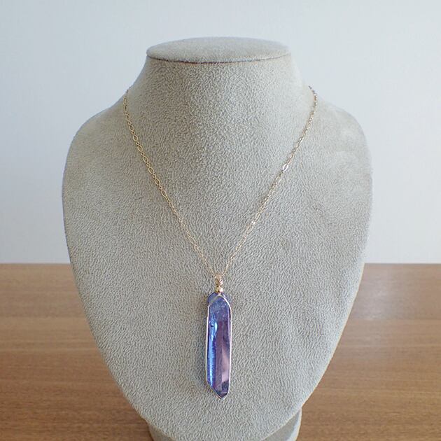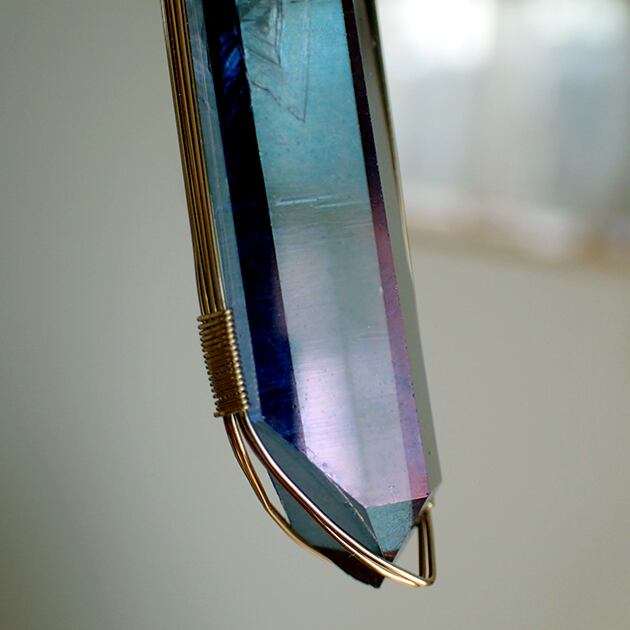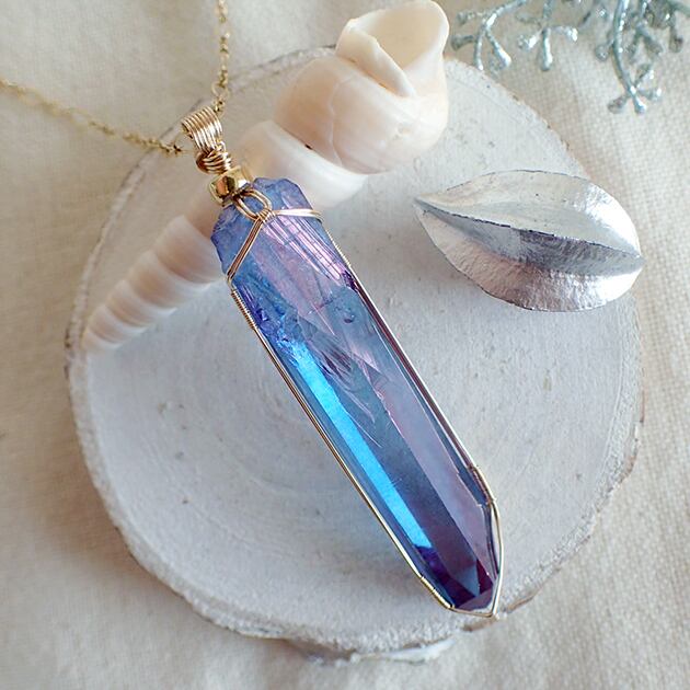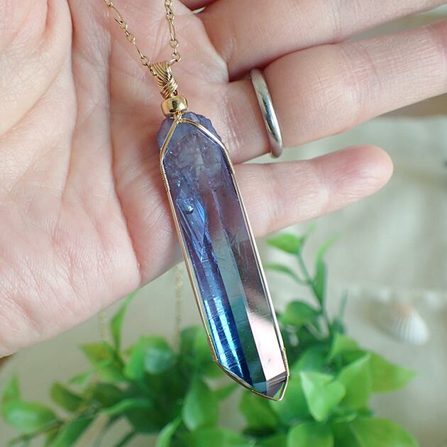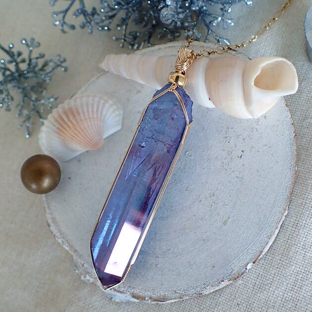 ・オーラ色の蒸着加工を施されたポイント型水晶です。