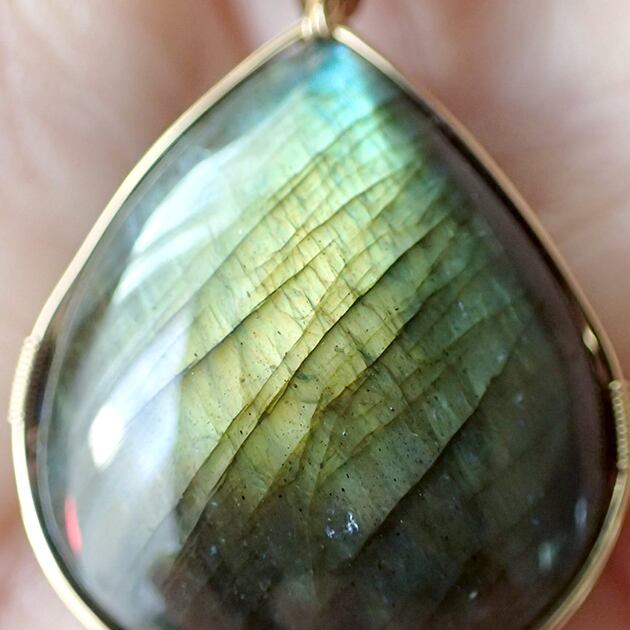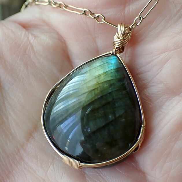 雫型のラブラドライトを女神巻き®ペンダントトップにお創りしました。