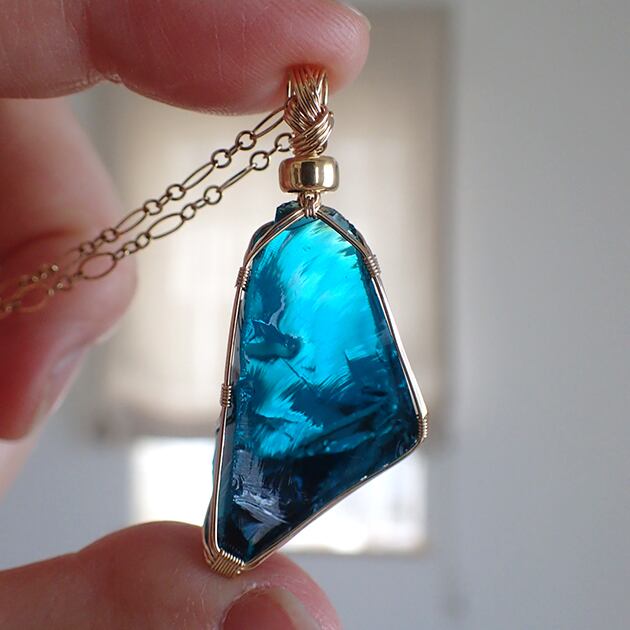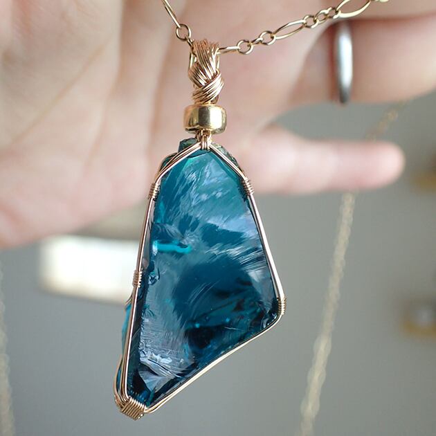 シエラネバダ産のアンダラクリスタル原石、イナンナ・ウィズダムを〈女神巻き®〉デザインでペンダントトップにお創りしました。