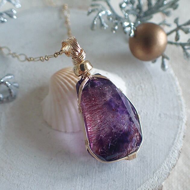 【メッセージジュエリー】〈女神巻き®〉スーパーセブン(アメジストエレスチャル)のペンダントトップ