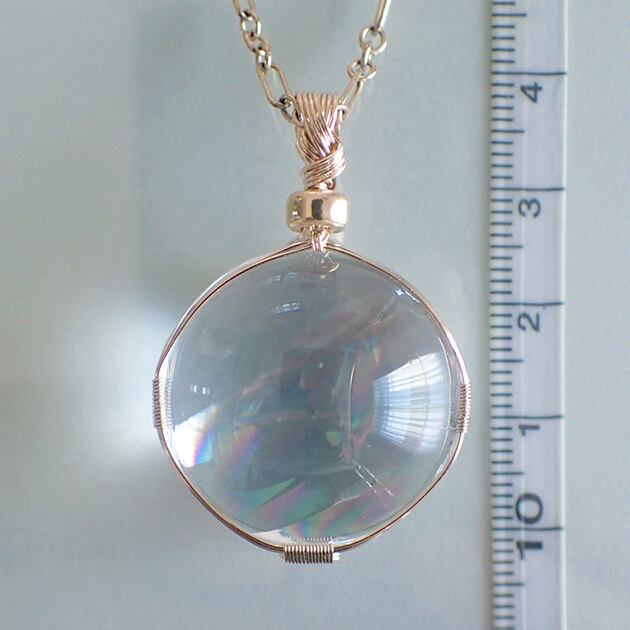 カボションはドーム型といってよいほどに厚みたっぷりで、この虹色の輝きに、まあるいエネルギーを添えているかのようです。