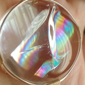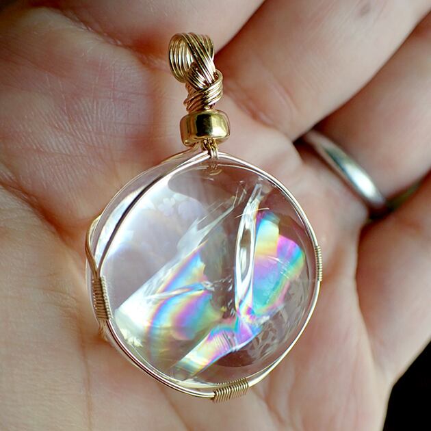 無色透明のクリスタル内部にクラックがあり、虹色の輝きを発しています。