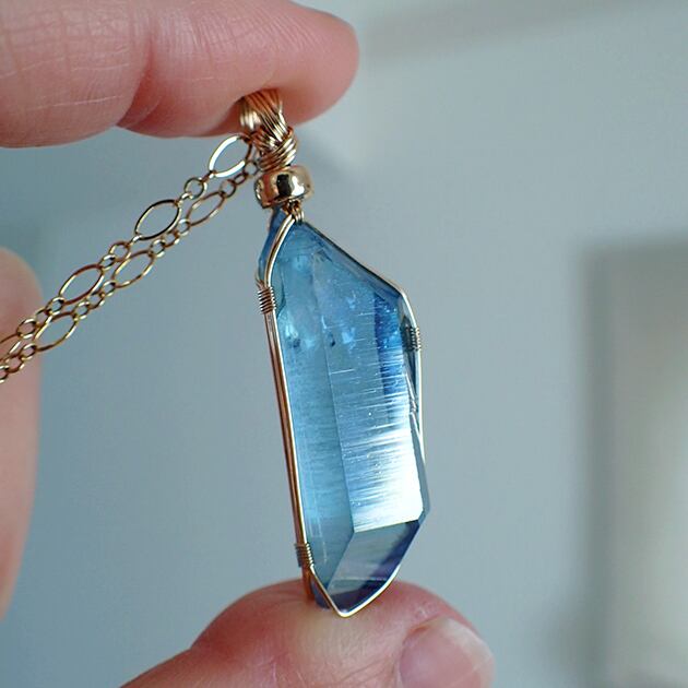 麗しい水のようなブルーに虹色の輝きが合わさった、幻想的なクリスタルです。