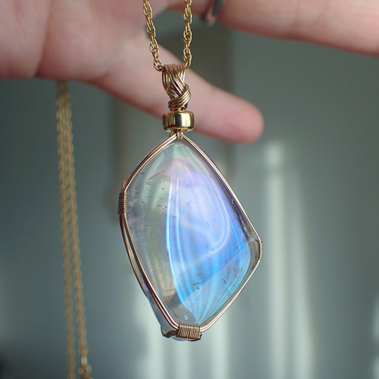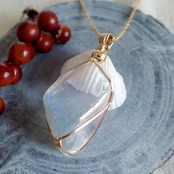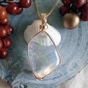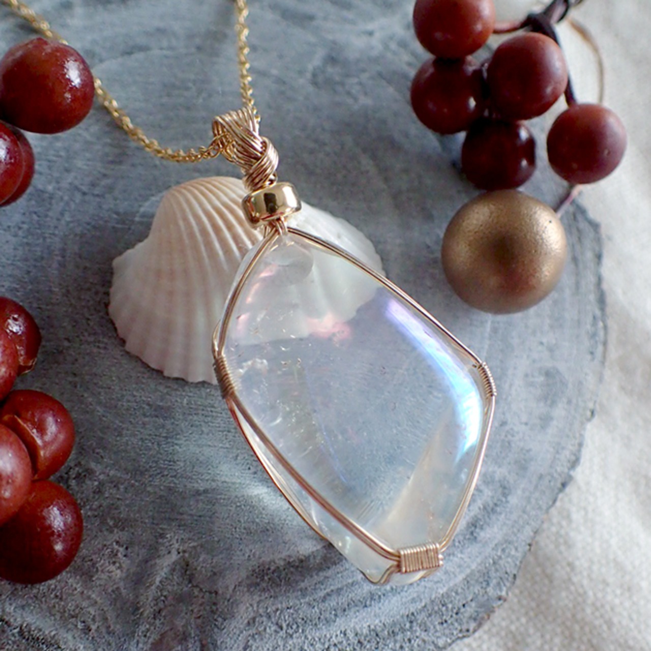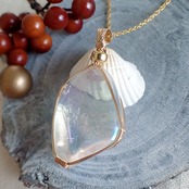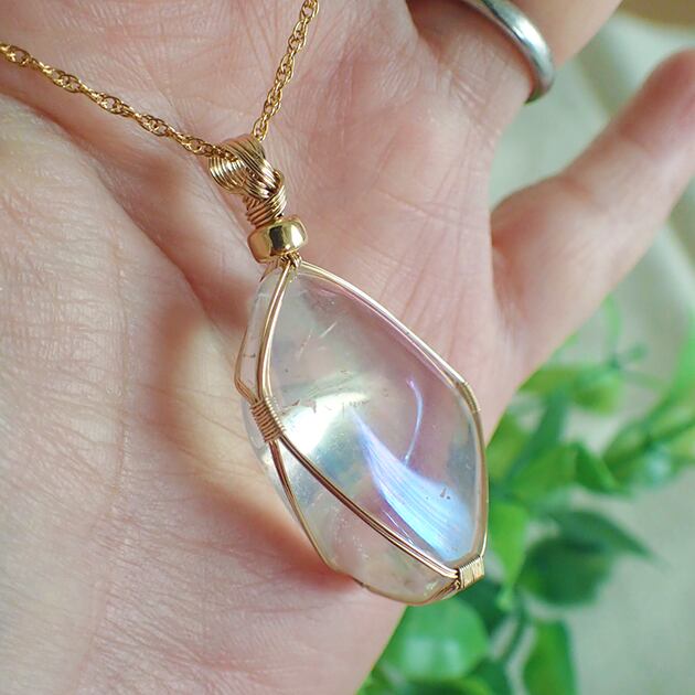 オーロラ・クォーツのタンブルを女神巻き®ペンダントトップにお創りしました。