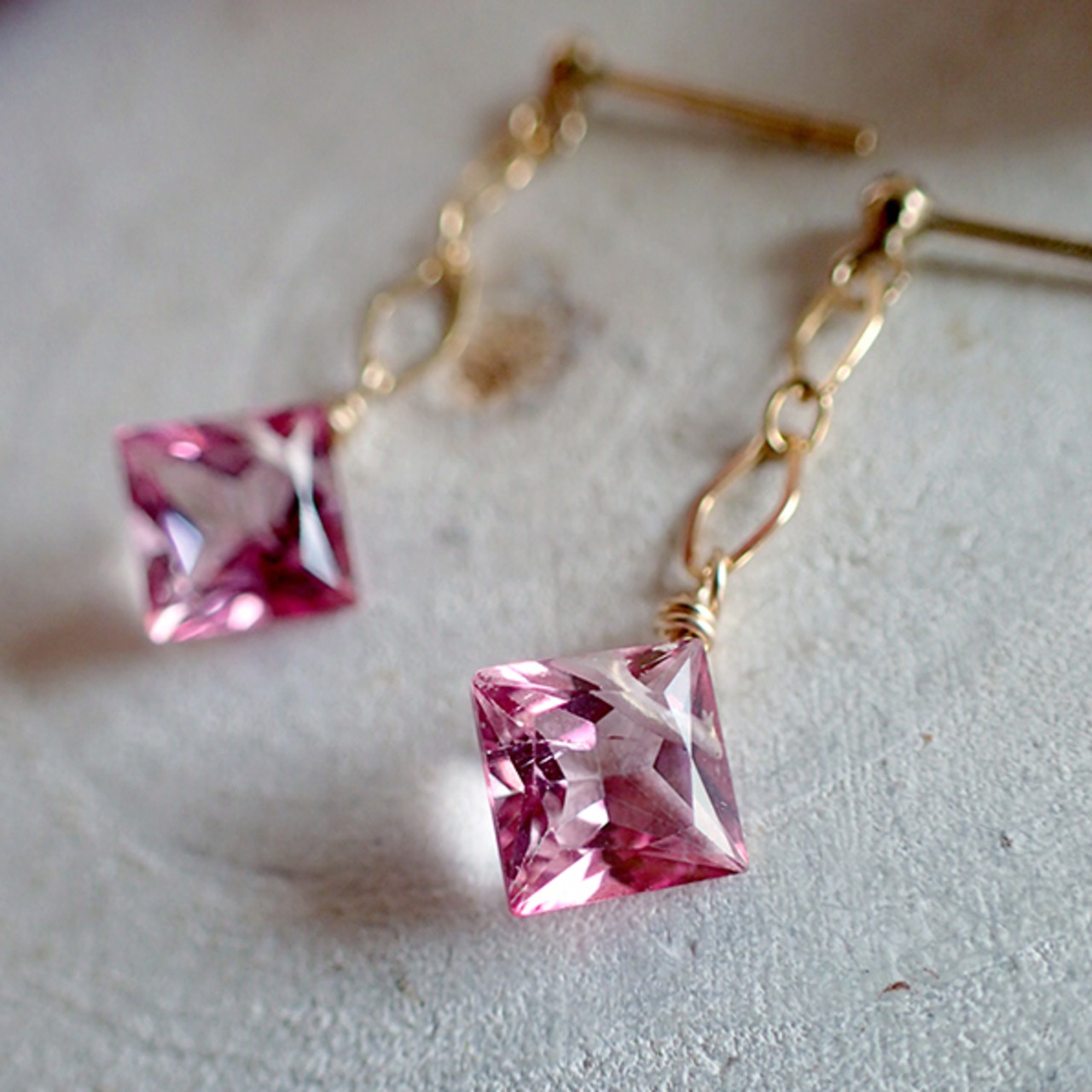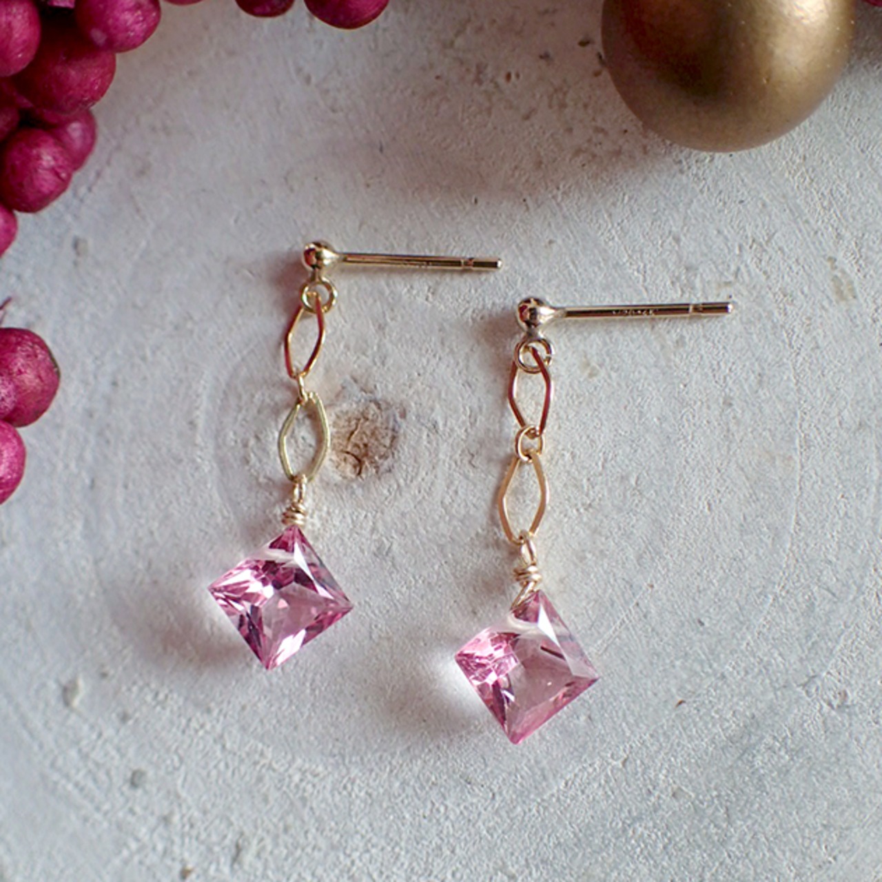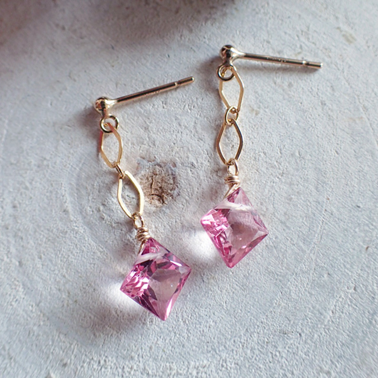 【Alchemy(錬金術)】〈14kgf〉小さなピンクトパーズのピアス