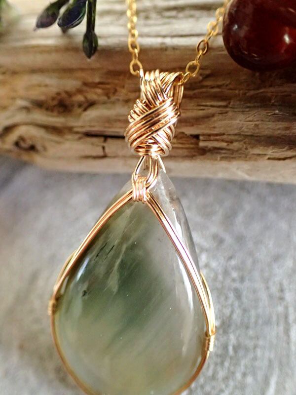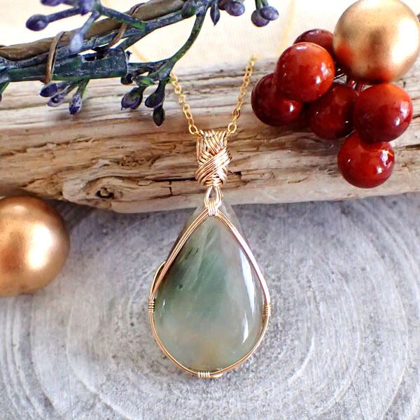 ご覧になってくださり、ありがとうございます。エンジェルヘアーとも呼ばれるアンフィボールインクォーツのドロップ型カボションを、〈女神巻き®〉デザインでペンダントトップにしました。14金ゴールドフィルドワイヤーを使用しています。(※ネックレスチェーンは別売りです)