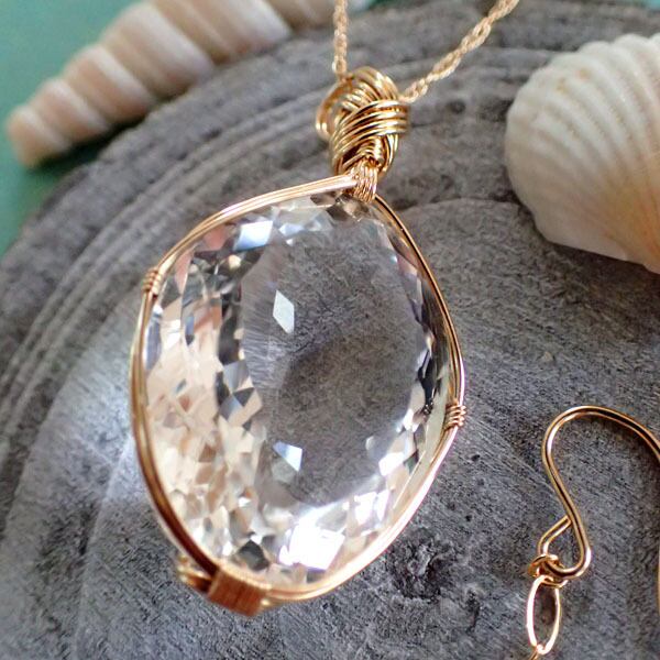 ご覧になってくださり、ありがとうございます。美しい輝きの大粒ファセットカット水晶を、〈女神巻き®〉デザインでペンダントトップにしました。14金ゴールドフィルドワイヤーを使用しています。(※ネックレスチェーンは別売りです)