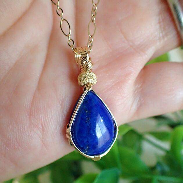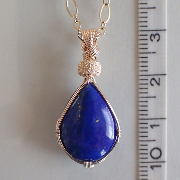 小さめサイズのドロップ型ラピスラズリを女神巻き®ペンダントトップにお創りしました。