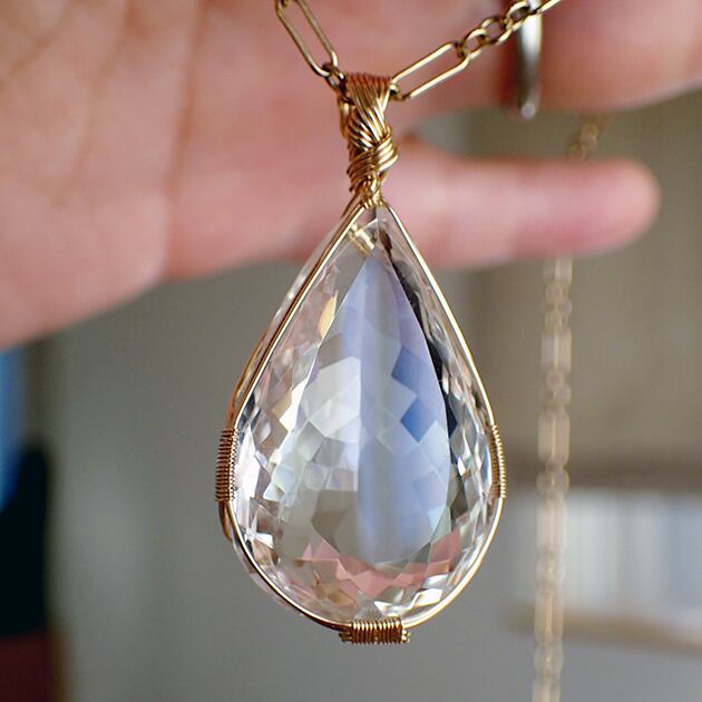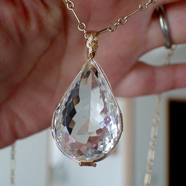 大粒の宝石水晶を女神巻き®ペンダントトップにお創りしました。